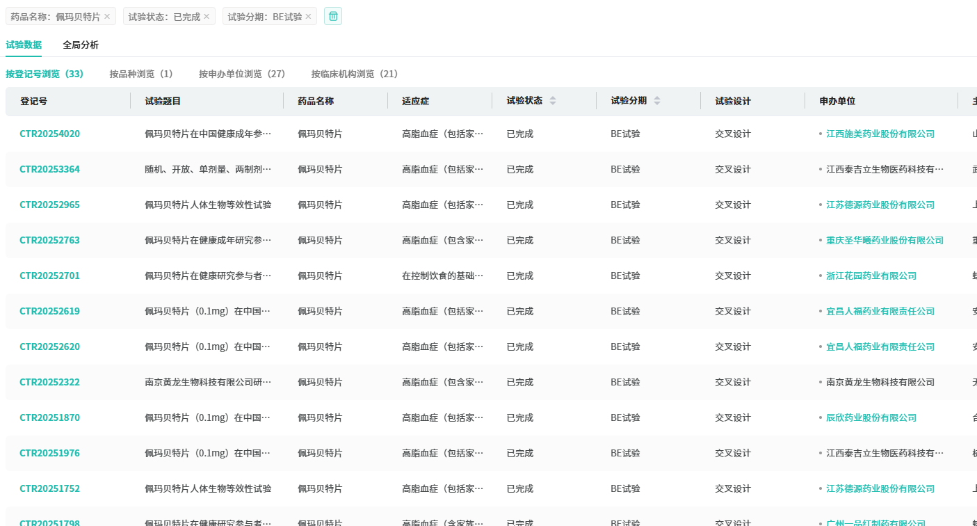 据摩熵医药数据库显示,目前已完成BE试验的企业达27家,另有2家药企BE试验进行中,首仿争夺堪称白热化。
