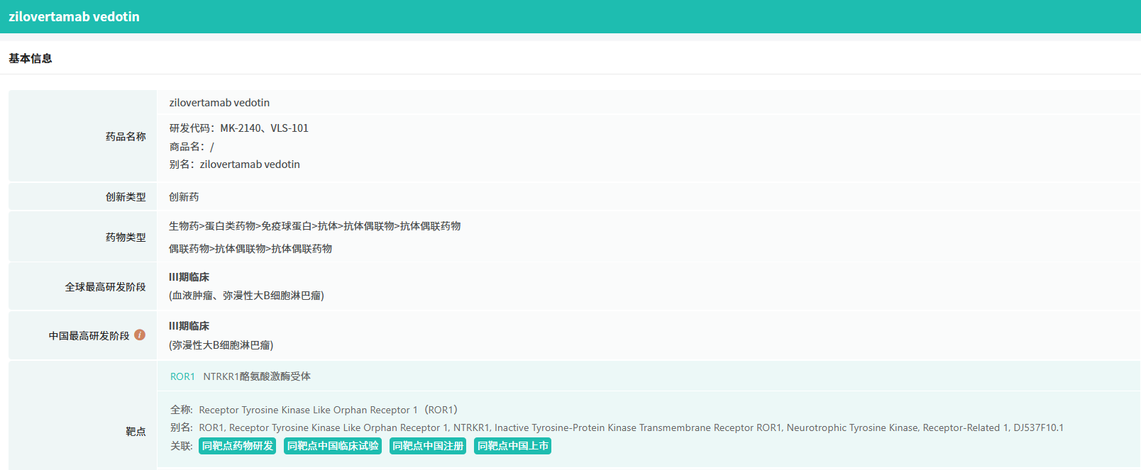 Zilovertamab vedotin(MK-2140,VLS-101)曾是VelosBio公司主要研究性候选药物,默沙东于2020年11月以27.5亿美元收购该公司从而获得了这款产品。