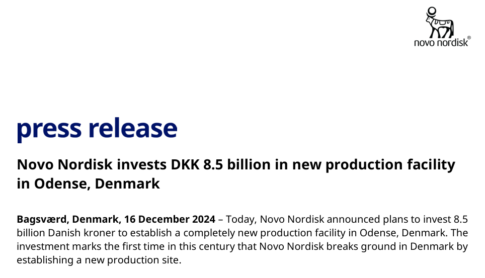 诺和诺德正努力增加其广受欢迎的糖尿病治疗药物和减肥药物的供应。该公司最近宣布在丹麦、法国和美国扩建几家工厂,耗资数十亿美元。今年6月,诺和诺德表示,预计今年将在生产方面投资68亿美元,高于2023年的39亿美元。