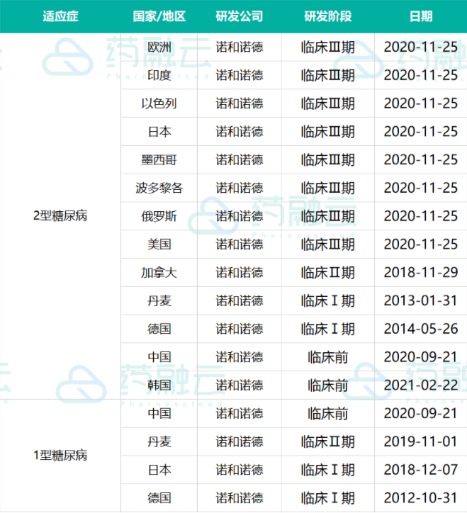 延伸阅读:2020年11月27日, 中国国家药监局药品审评中心(CDE)公示诺和诺德(Novo Nordisk)的周胰岛素制剂icodec胰岛素注射液在中国获批临床。据药融云数据全球药物研发数据库查询,目前icodec胰岛全球研发最高阶段为临床Ⅲ期。