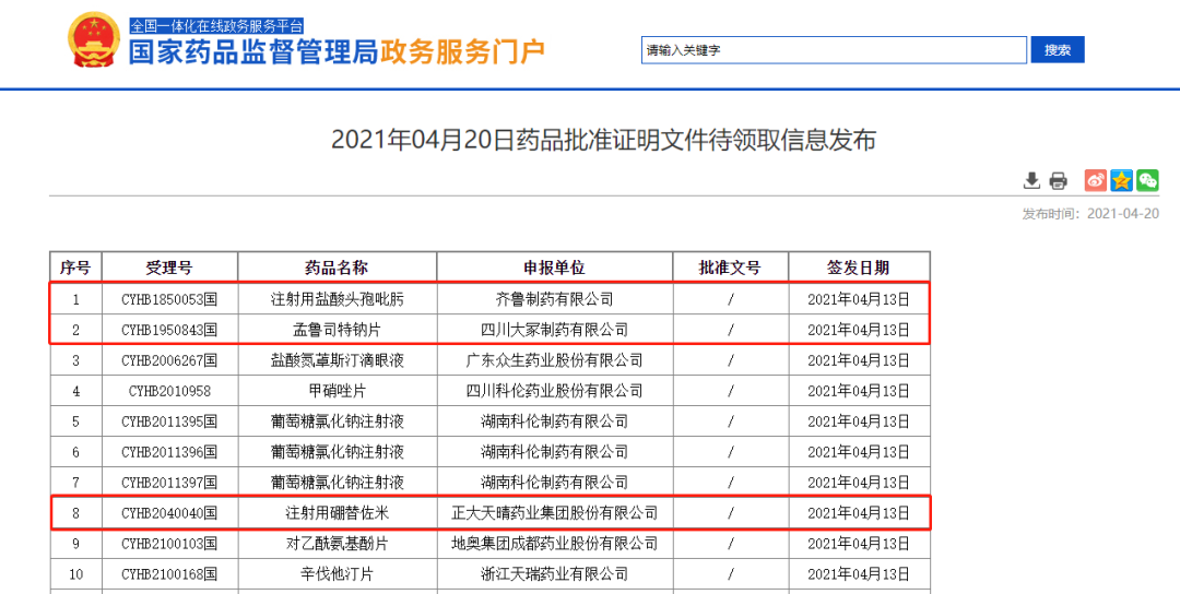 图1:4月20日药品批件信息