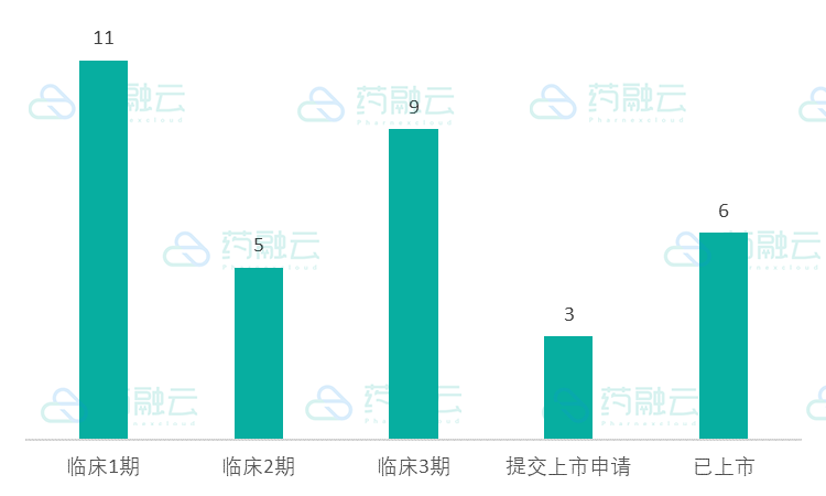 从适应症来看,肿瘤29项,新陈代谢2项,移植物抗宿主病1项,自身免疫1项,眼底病1项。