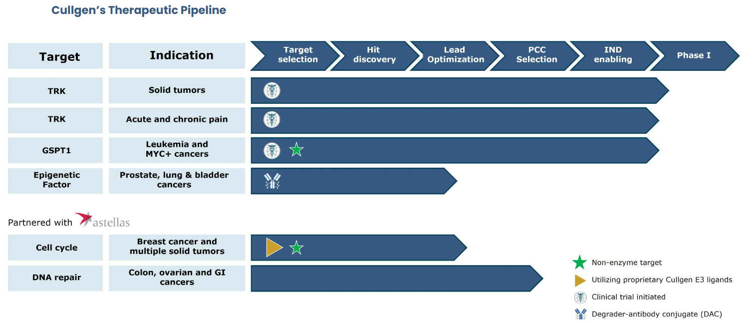 Cullgen研发管线概况和发展里程碑