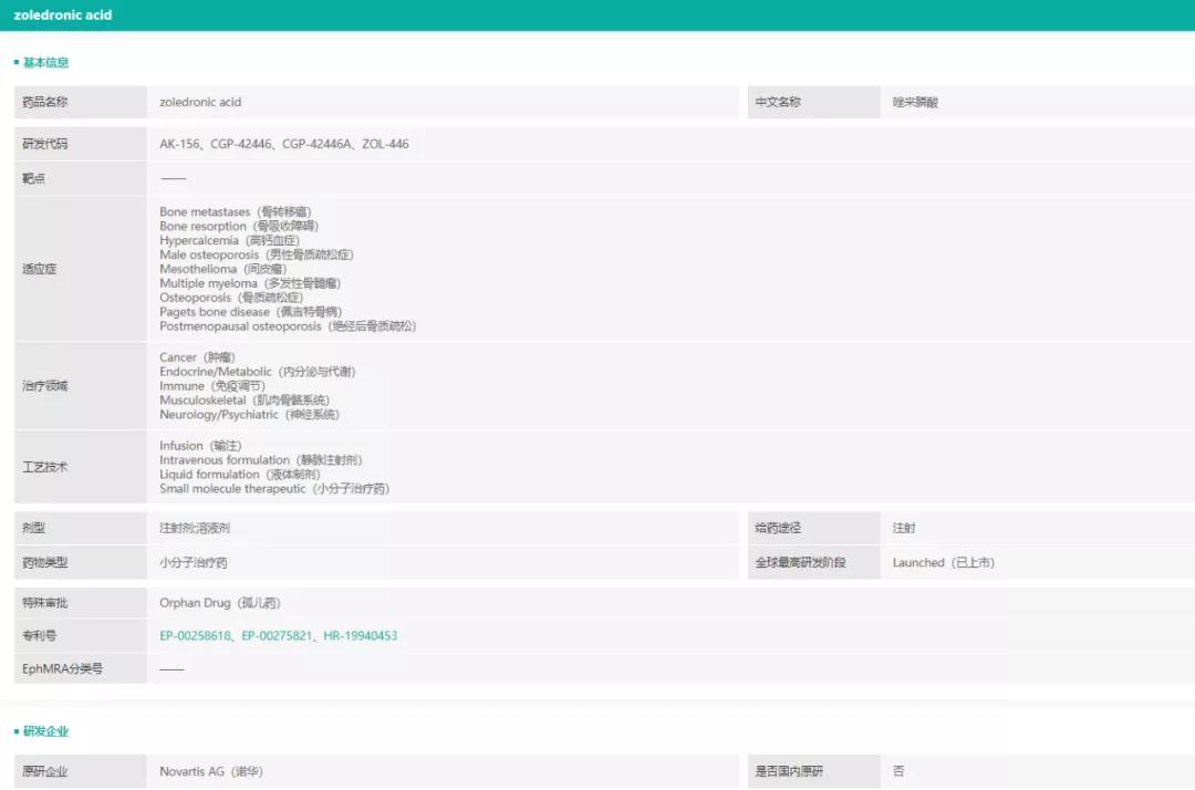 2018年8月,诺华的注射用唑来膦酸注销了以往的批准文号,由水针剂性注射用唑来膦酸浓溶液置换所有粉针剂。对于注射用唑来膦酸浓溶液,除正大天晴外,另有2 家国产河北仁合益康药业和华润双鹤企业申报上市,不过本次天晴过评为该品种首家过评。