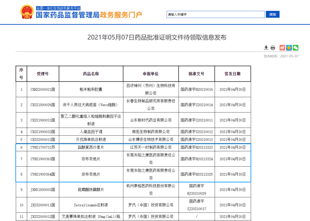 图1:5月07日药品批件信息