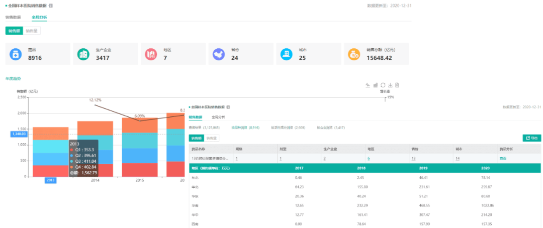 针对全球药物销售数据模块进行了智能化升级,让用户轻松快速了解跨国巨头们的药品营收,为预估市场规模,制定仿制药战略提供数据支撑。