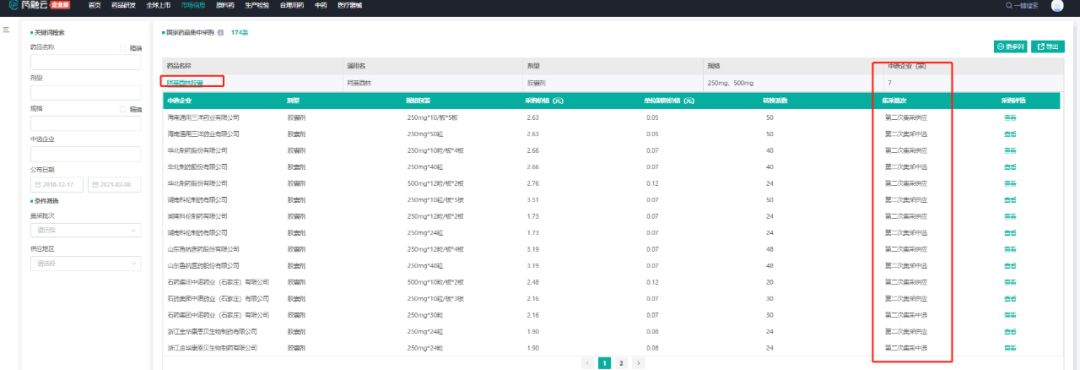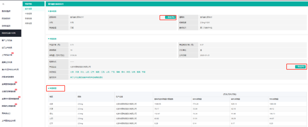 国家药品集中采购数据库——直观展示各品种中选企业,中选批次;关联一致性评价、各省报量数据