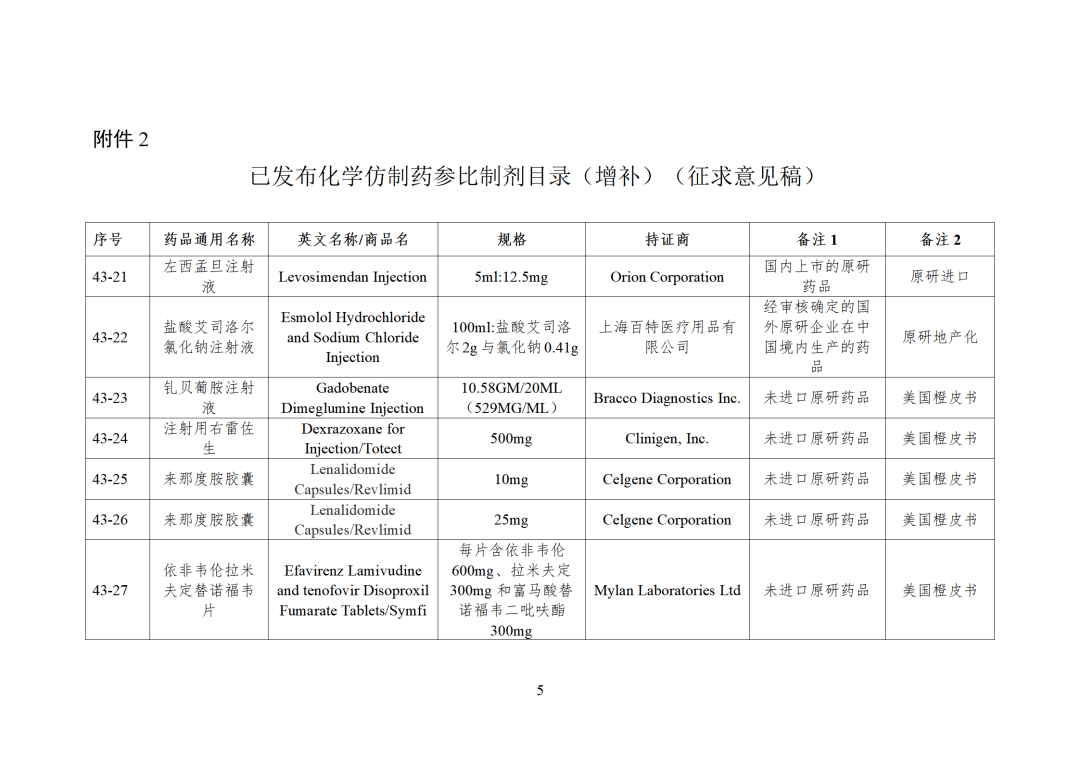 CDE发布化学仿制药参比制剂目录(第四十三批)(征求意见稿),其中20个目录,20个增补,另外有43个审议未通过,原因包括:本品上市时间较早,临床安全有效性数据有限,且临床上已有更优品种替代;为已公布参比制剂的改剂型产品,且未改变给药途径,无明显临床优势等。