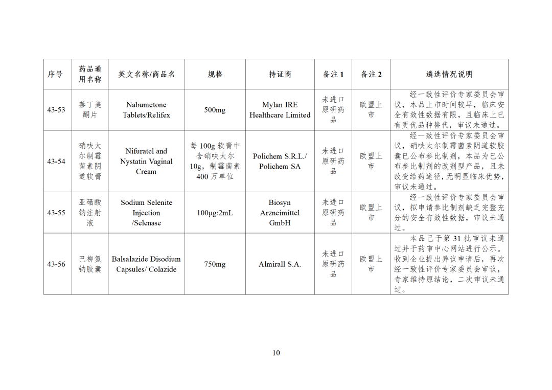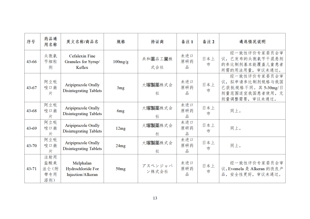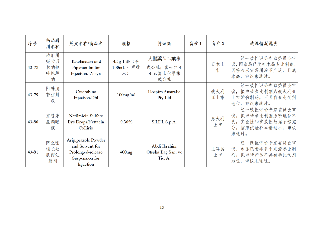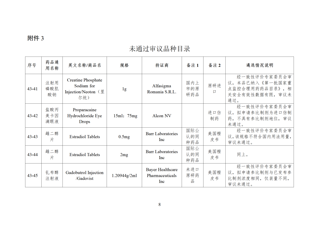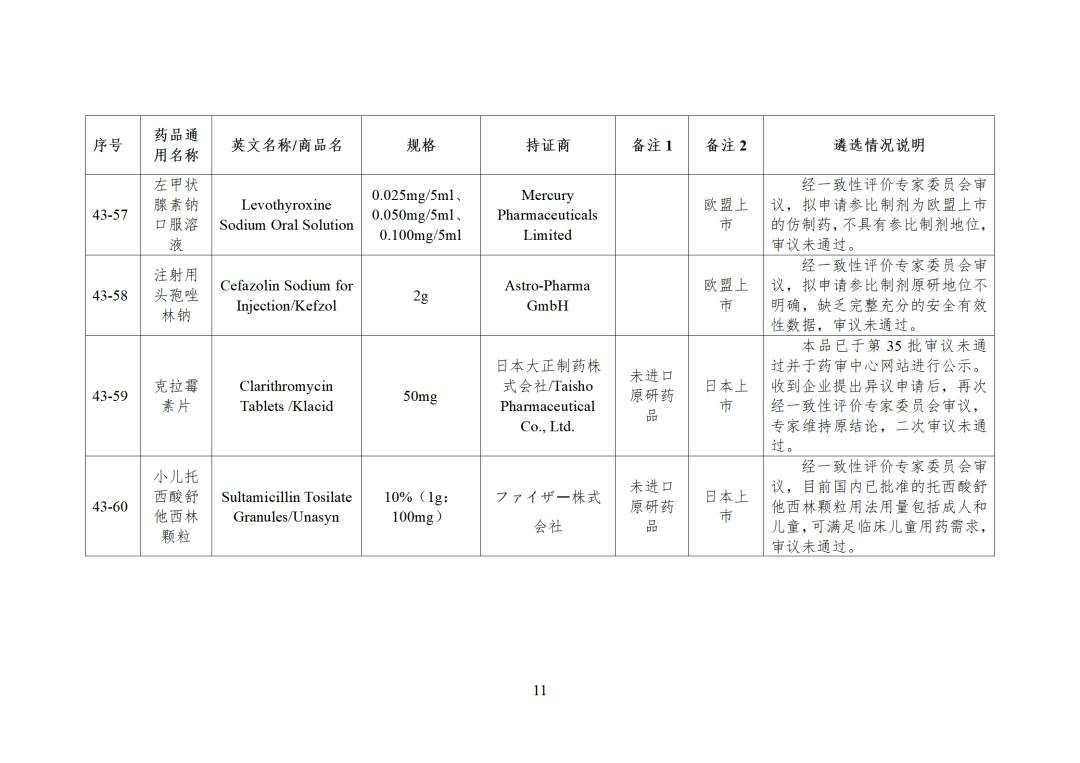 43批参比制剂公示,其中,44个参比审议未通过,目前累计164个参比制剂未通过审议!