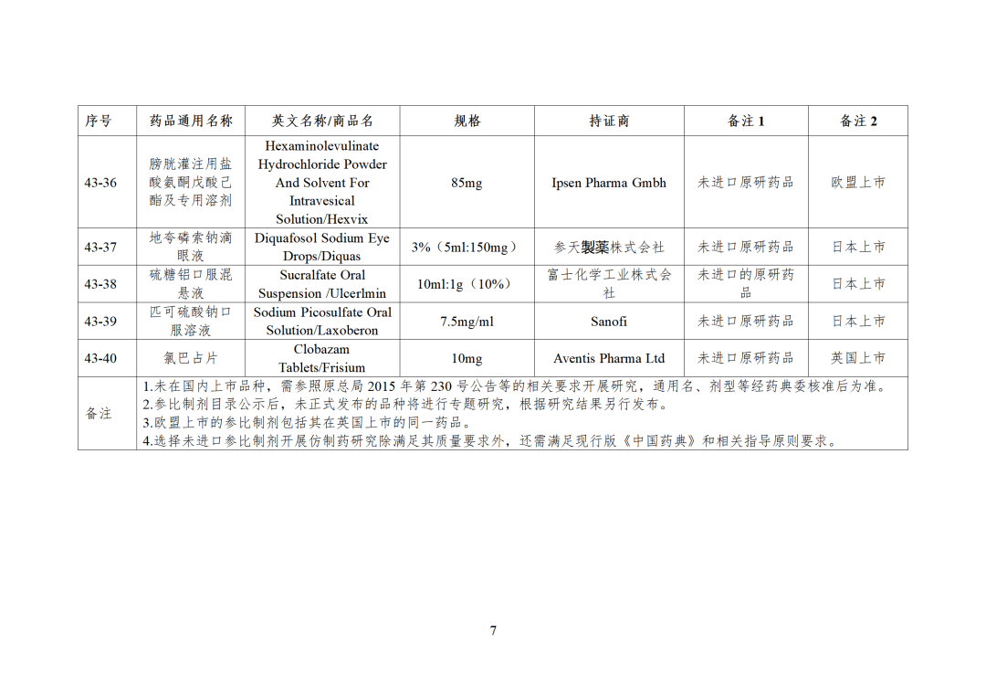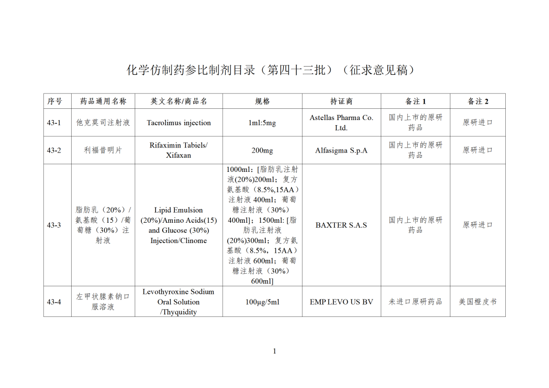 根据国家局2019年3月28日发布的《关于发布化学仿制药参比制剂遴选与确定程序的公告》(2019年第25号),我中心组织遴选了第四十三批参比制剂(见附件),现予以公示征求意见。