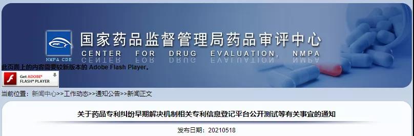 导读:2021年5月18日,CDE发布,关于药品专利纠纷早期解决机制相关专利信息登记平台公开测试等有关事宜的通知,CDE正式发布《中国上市药品专利信息登记平台》,测试时间至5月31日;