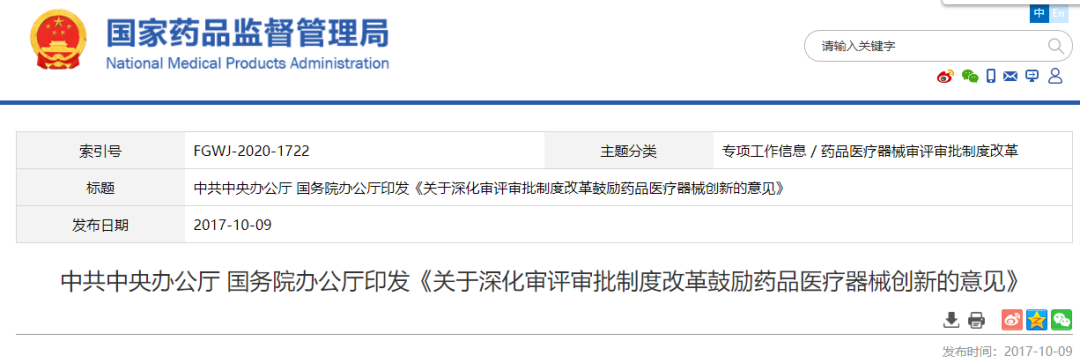 2017年10月09日,总局官网转发《关于深化审评审批制度改革鼓励药品医疗器械创新的意见》其中明确提出探索建立药品专利链接制度。