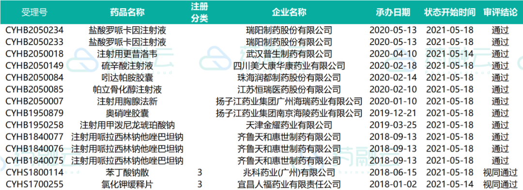 2021.05.01-2021.05.20在审批阶段仿制药药物情况