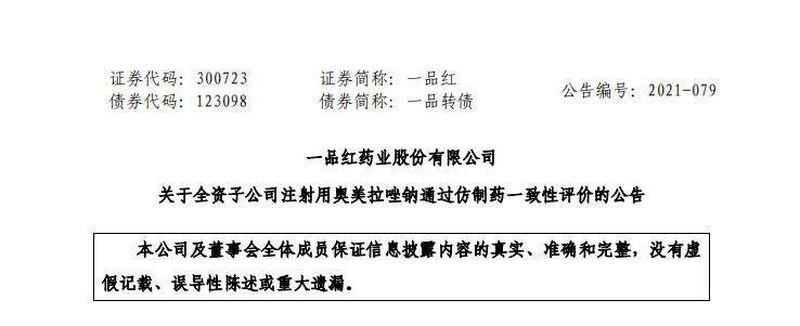 5月26日,一品红公告,全资子公司广州一品红制药近日收到国家药监局核准签发的通知,公司生产的注射用奥美拉唑钠20mg、40mg双规格通过仿制药质量和疗效一致性评价。