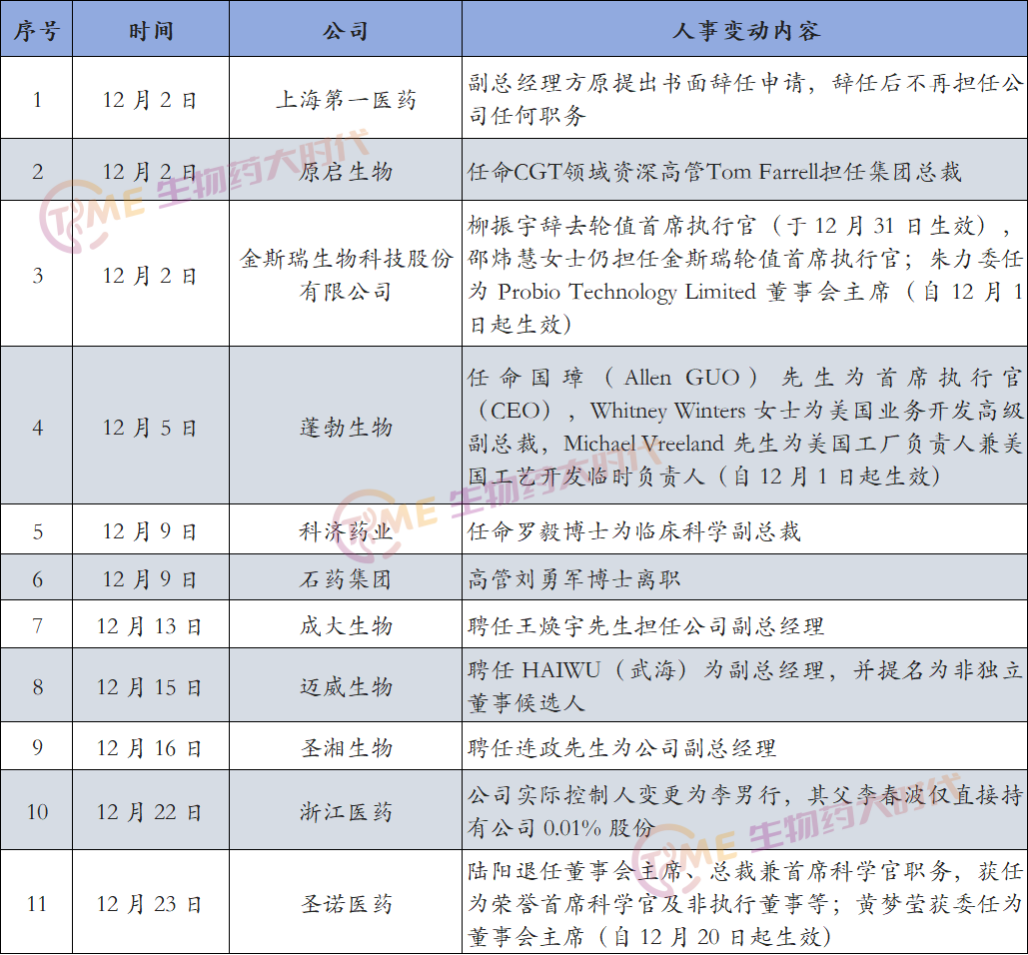 在医药行业风云变幻的格局之下,企业的发展轨迹与人事更迭紧密交织,不仅牵动着企业自身的战略布局与未来走向,也在一定程度上反映了整个行业的发展趋势与竞争态势。近期,各大药企的人事变动消息纷至沓来,下面让我们一同聚焦12月份国内药企的人事风云。