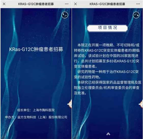 5月28日,朋友圈看到益方生物KRAS-G12C肿瘤患者招募信息,计划在中国20家医院,总共计划招募至多83名KRAS-G12C突变实体瘤患者。D-1553是益方生物自主研发的一款KRAS G12C抑制剂,用于治疗带有KRAS G12C突变的非小细胞肺癌、结直肠癌等癌症。