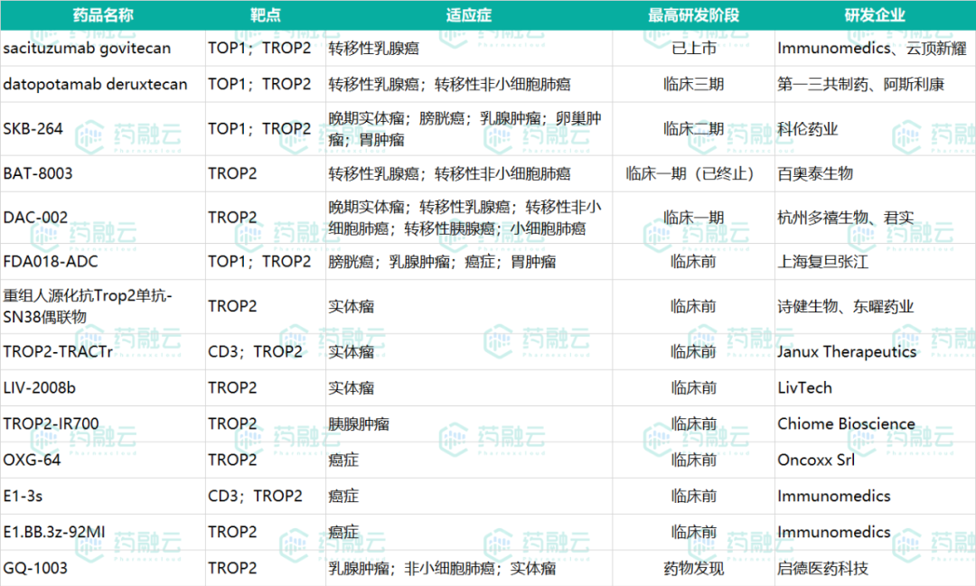 全球TROP2靶点管线一览