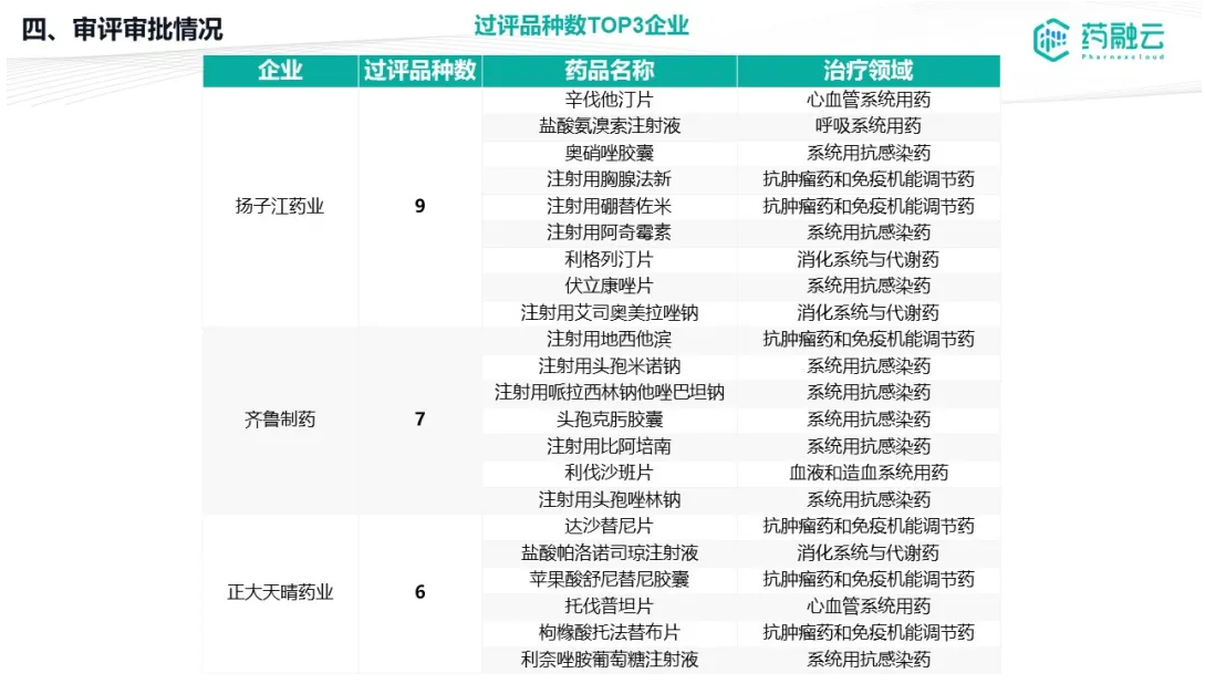 ·105个品种通过(含视同通过)一致性评价,扬子江、齐鲁、正大天晴大丰收