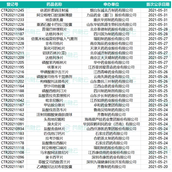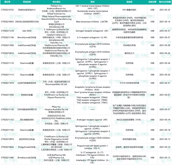 数据统计时间段为2021年5月1日-2021年5月31日,药融云将定期公示临床试验信息,关注“药融云”公众号即可定期查看。如有疏漏,欢迎指正!