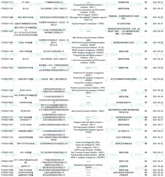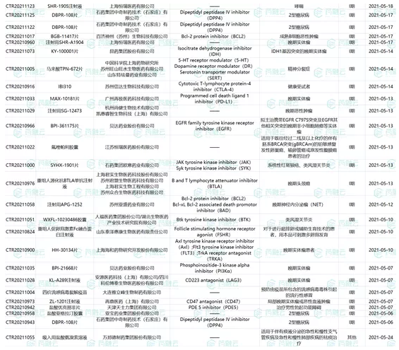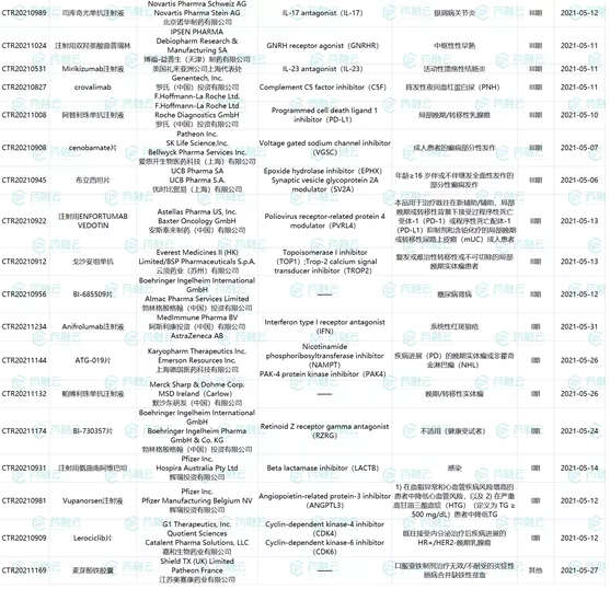 四、新公示进口及国内新药136项辉瑞、阿斯利康、罗氏等多家企业相关药物处于临床后期