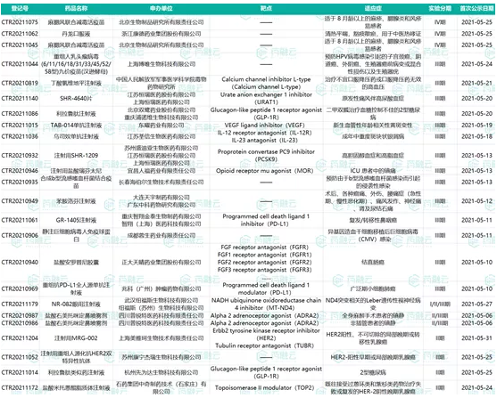 2021年5月1日至5月31日,CDE新公示临床试验共计246项。