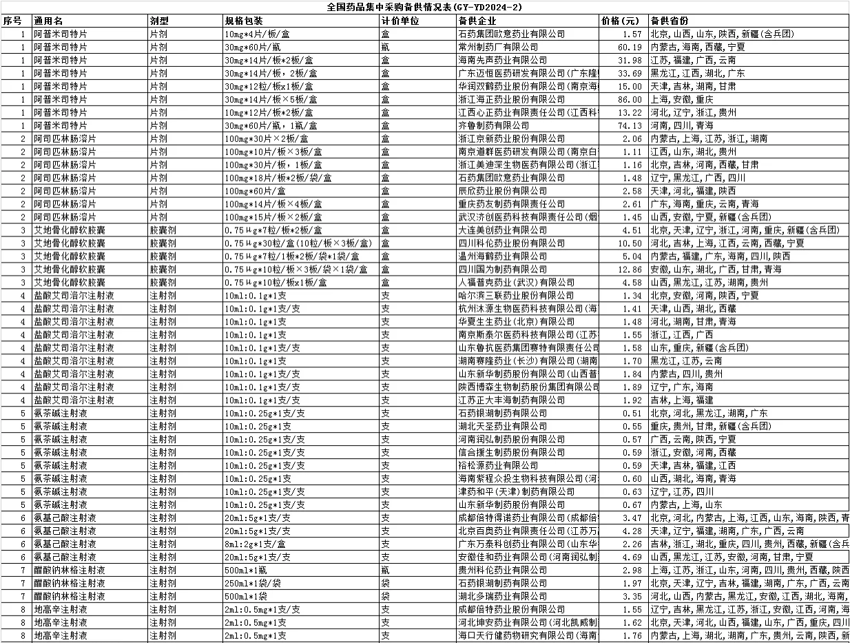 12月30日,据国家组织药品联合采购办公室发布《关于公布全国药品集中采购(GY-YD2024-2)中选结果的通知》,正式公布第十批国采中选结果。本次中选结果将于2025年4月实施,具体执行日期以各地发布通知为准。