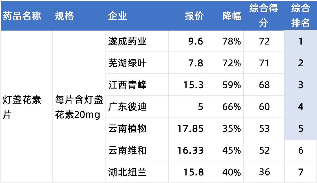 全国中成药集采报价结束,结果还未正式公布。据相关数据统计,这一组参与厂家多,总计有33个有效报名企业,竞争激烈,降幅很大!A单元7个企业,入围7进5。报价降幅最大的是遂成药业,36片装,一盒报价9.6,最小单位价0.27元,降78%。其中,入围产品的降幅都符合直接拟中选条件,可以直接拟中选。