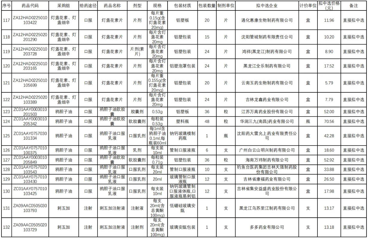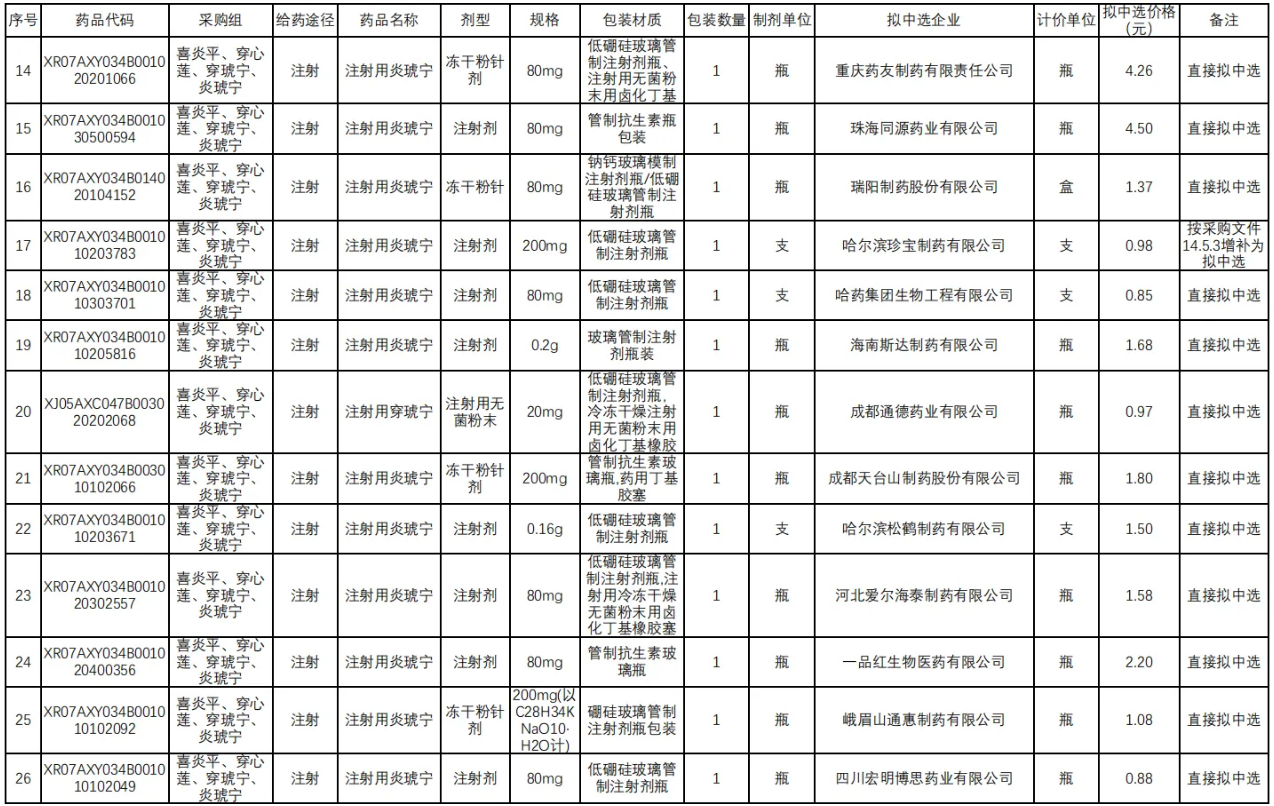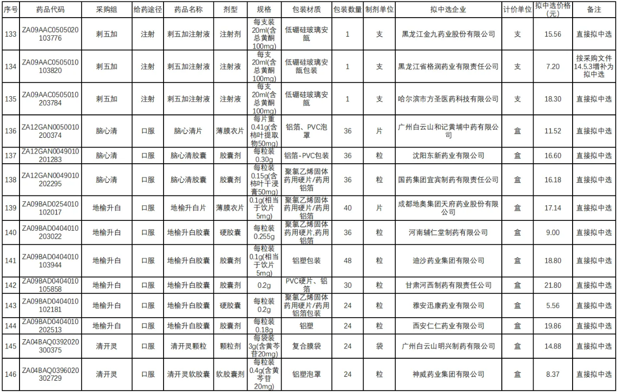 在独家品种方面,江西青峰药业的喜炎平注射液尤为引人瞩目。其拟中选价格仅为5.4元,相较于此前湖北省医保局公示的最低挂网价21.5元、省际联盟集采价19.6元以及基准价21.5元,实现了75%的大幅降价。值得注意的是,喜炎平作为增补中选品种,其在2023年全国院内市场的销售额超20亿元。该品种需满足技术评价满分或为国家中药保护品种(有效期内)的条件,并接受同组内降幅排名前70%的最低降幅。