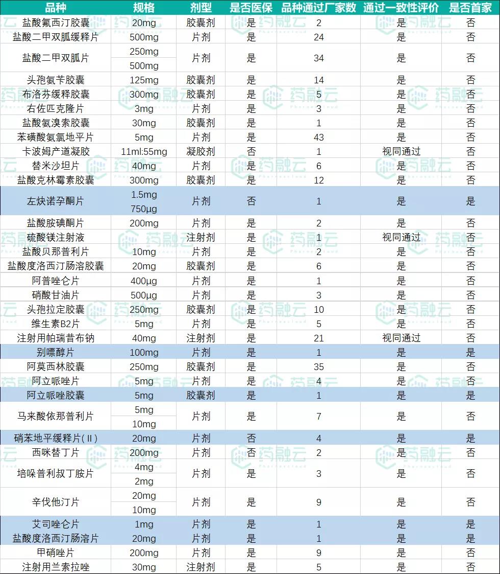 表1:本周通过一致性评价情况汇总表