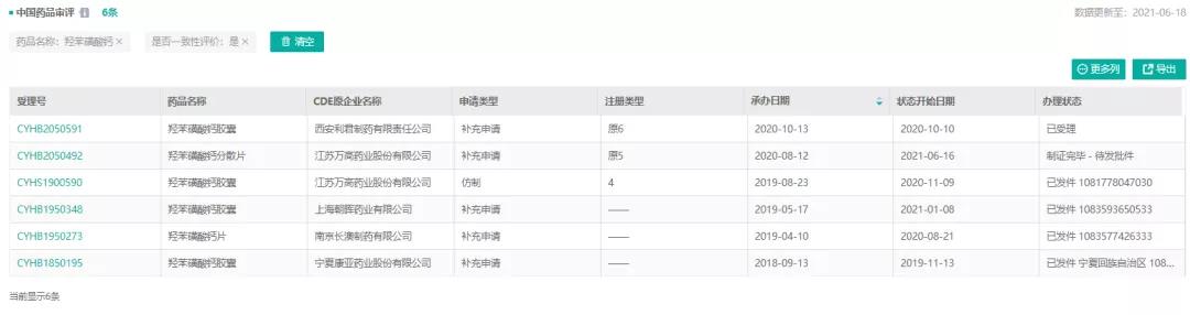 图4:“羟苯磺酸钙”的一致性评价申请情况