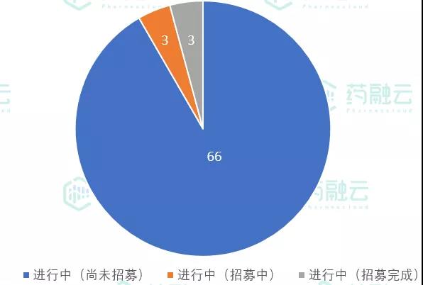 从实验状态来看,72项试验均在进行中,其中66项尚未开始招募,3项试验正在招募中,3项已招募完成。