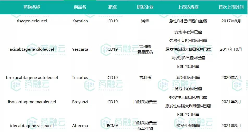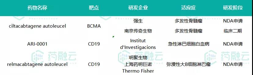 四、全球申请上市的CAR-T细胞疗法药明巨诺或紧随入局