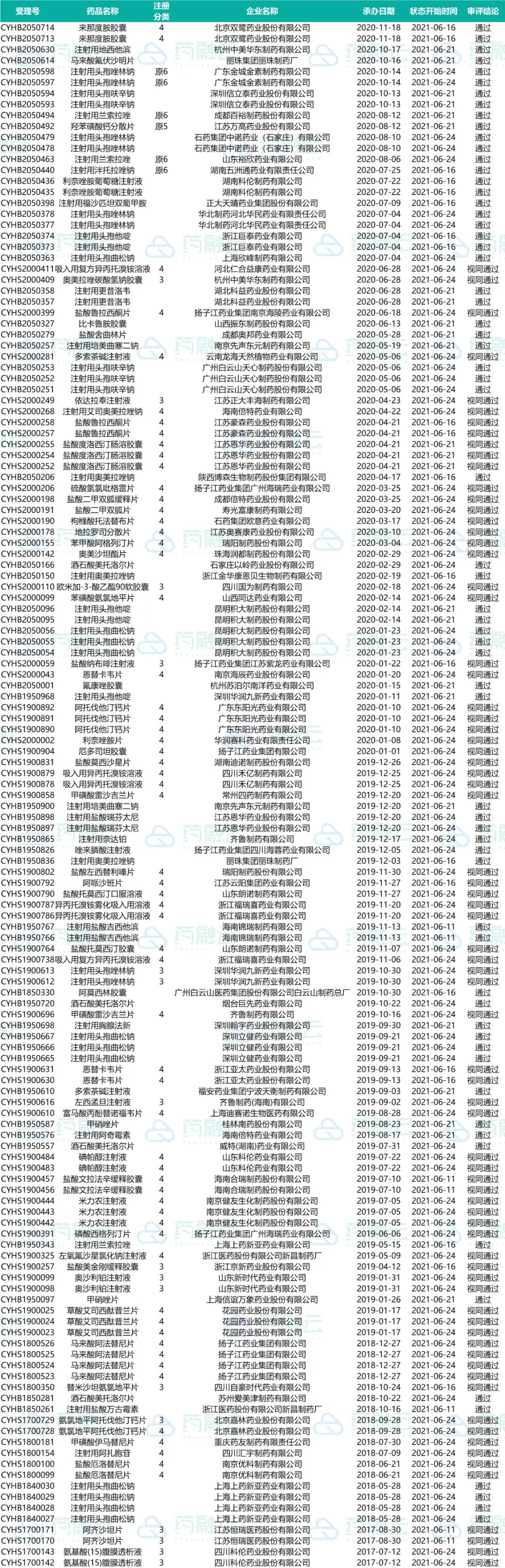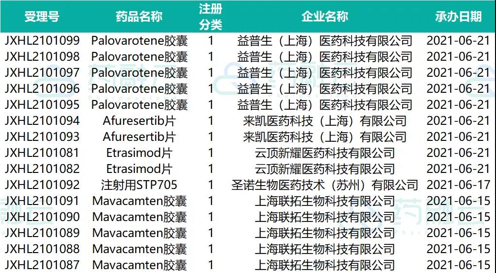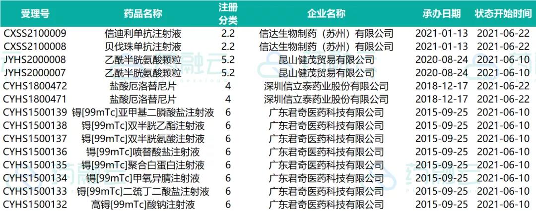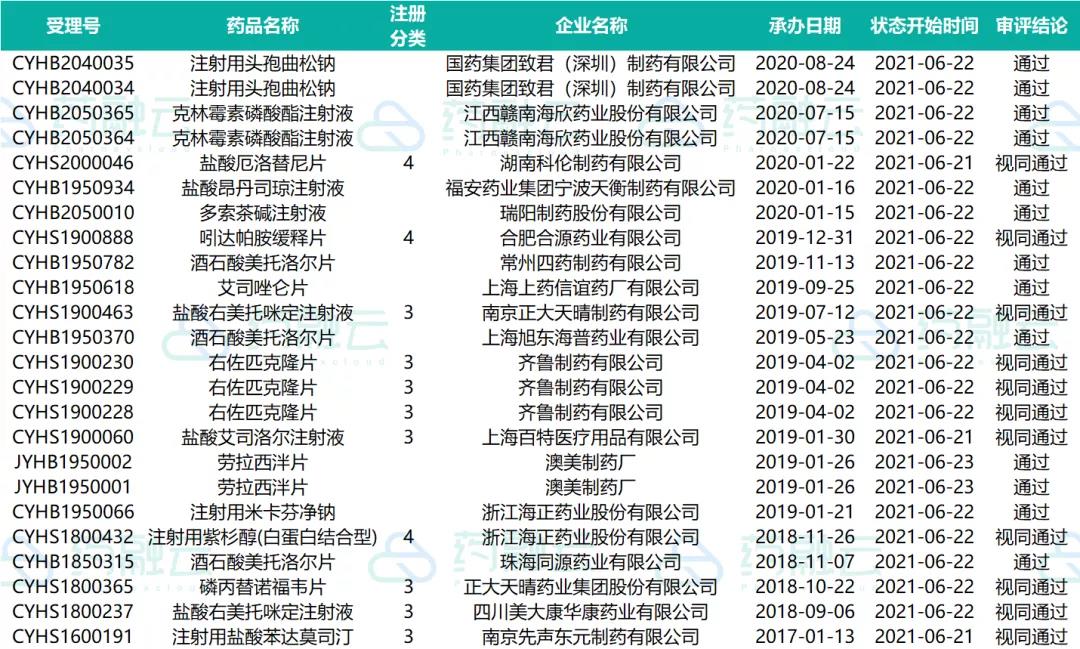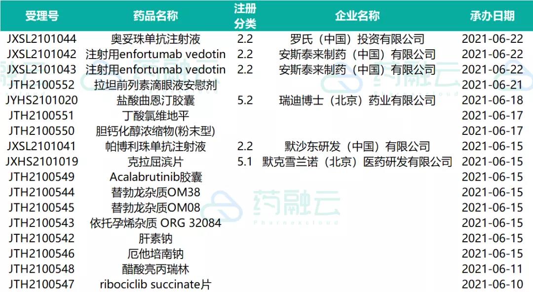 数据统计时间段为2021年6月10日-2021年6月24日,药融云将定期公示药品审评信息,关注公众号即可定期查看。如有疏漏,欢迎指正!