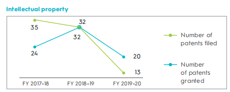 2019-2020财年,Cipla在研发方面支出117.4亿卢比。他们认为投资创新研发将为公司带来长期的价值,并且为世界各地的患者提供可负担得起的药物。2020年他们完善了产品开发方法,将资源战略性地分配到竞争不充分、但有更大潜力产生的高收入复杂制剂产品上。与去年相比,这导致了专利申请数量和研发投资减少。然而,这种战略转变对营收的积极影响将在未来一年显现出来。