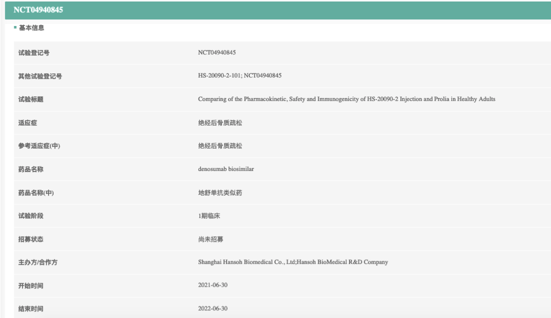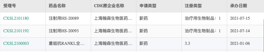 2021年1月6日,豪森药业生物药临床申请获NMPA/CDE受理公示,该生物药为3.3类新药重组抗RANKL全人源单克隆抗体注射液。