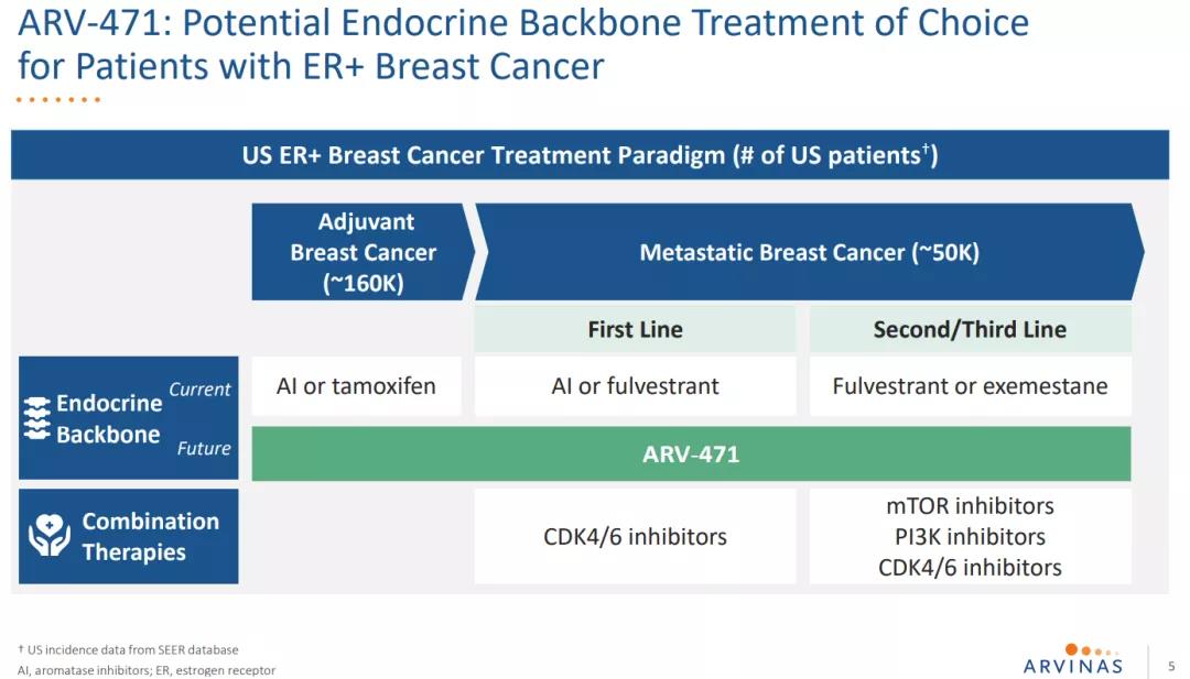 ARV-471目前处于 II 期开发阶段,用于治疗 ER+/HER2-、局部晚期或转移性乳腺癌患者。