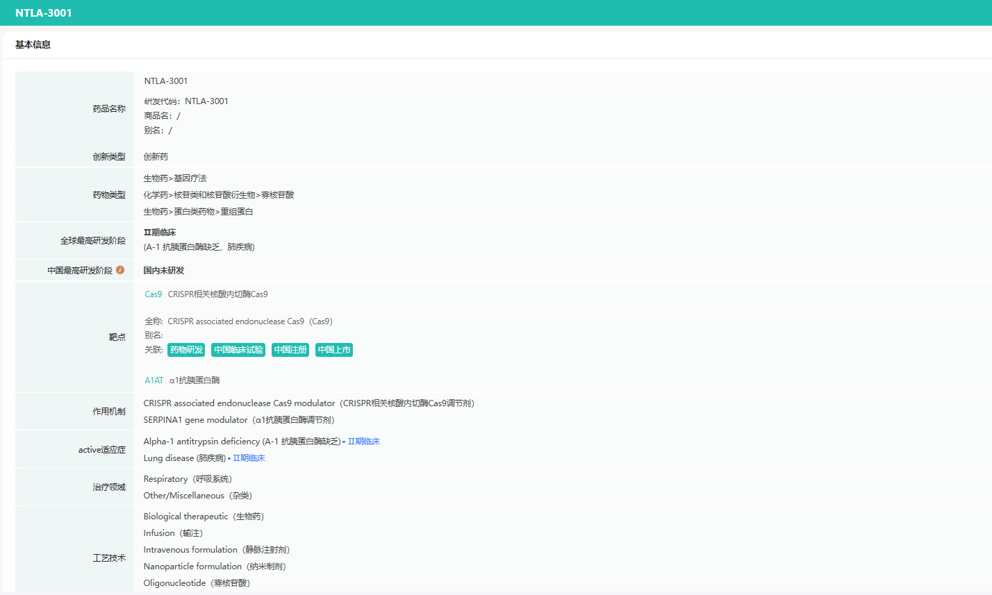 同时,Intellia停止NTLA-3001的开发并裁员约27%。NTLA-3001是一款针对α-1抗胰蛋白酶缺乏症(AATD)相关肺病的体内CRISPR基因编辑药物。