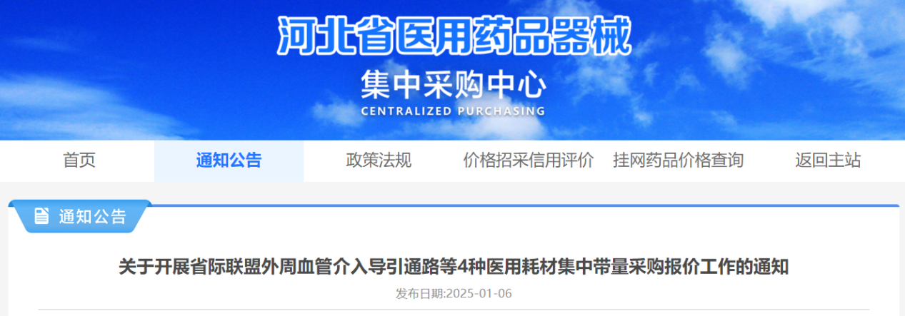 近日,河北省医用药品器械集中采购中心发布了关于外周血管介入导引通路等4种医用耗材的集中带量采购报价工作的通知及约定采购量分组情况的公告,标志着这场涉及27个省(市、自治区、兵团)的集采大幕正式拉开。