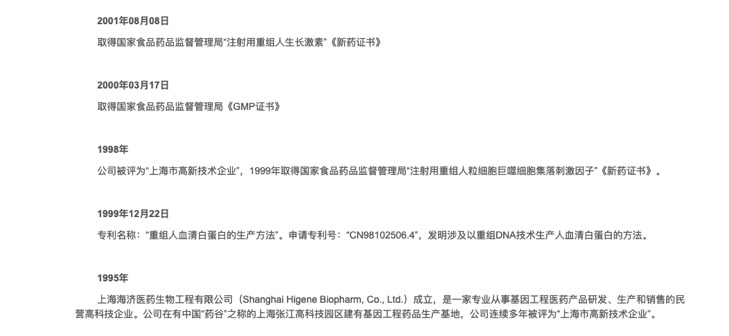 中山未名海济生物医药有限公司(原名:中山海济医药生物工程股份有限公司)成立于2004年,是一家拥有自主知识产权的基因工程生物制药企业,2015年通过企业重组,成为未名集团下属制药企业,经营范围:研发、生产、销售基因重组产品(注射用重组人生长激素,rhGh)以及研究生物制品,属于基因重组蛋白类药物,为国家二类新药,应用于因内源性生长激素缺乏所造成的儿童生长缓慢等多个治疗领域。海济强调专注创新以求发展,自成立至今,获得国家一类新药“基因重组人血清白蛋白”发明专利:国家二类新药“注射用重组人生长激素”新药证书、药品GMP证书、药品生产许可证、药品生产批件、国家高新技术企业等证书,2005年取得国家食品药品监督管理局颁发的“药品GMP证书”、“药品生产许可证”,2006年11月被评为“广东省民营科技企业”,2009年获得了“广东省高新技术产品”证书,2012年被评为“广东省高新技术企业”,2013年获批组建“中山市生物制药(海济)工程技术研究开发中心。