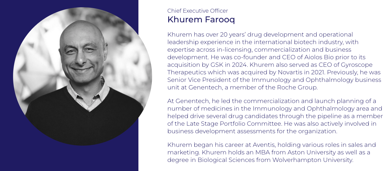 Verdiva的CEO为Khurem Farooq。此前是Aiolos Bio的CEO(曾任职于基因治疗公司Gyroscope Therapeutics后被诺华收购) ,从中国的恒瑞医药引进TSLP快速倒手给了GSK。核心团队来自Aiolos Bio。