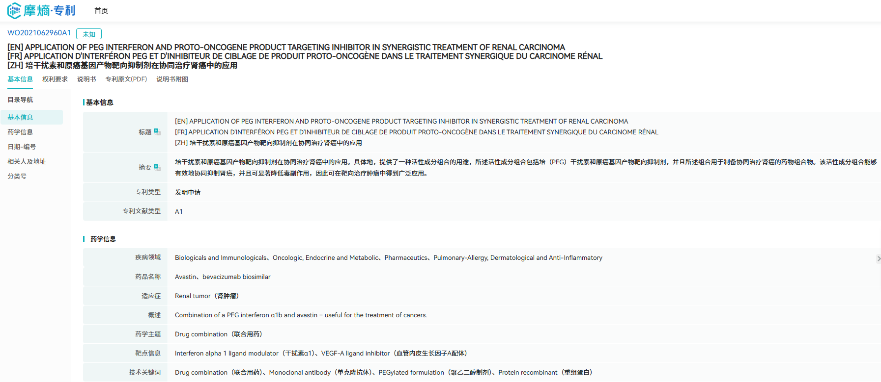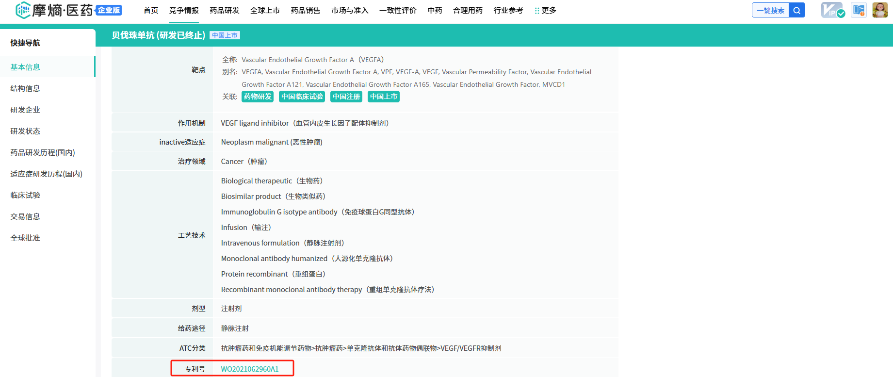 在药品详情页面,进行了两项重要功能升级,首先是可以通过点击专利号,直接跳转至专利专版数据库的详情页面,简化了专利信息的查询流程。