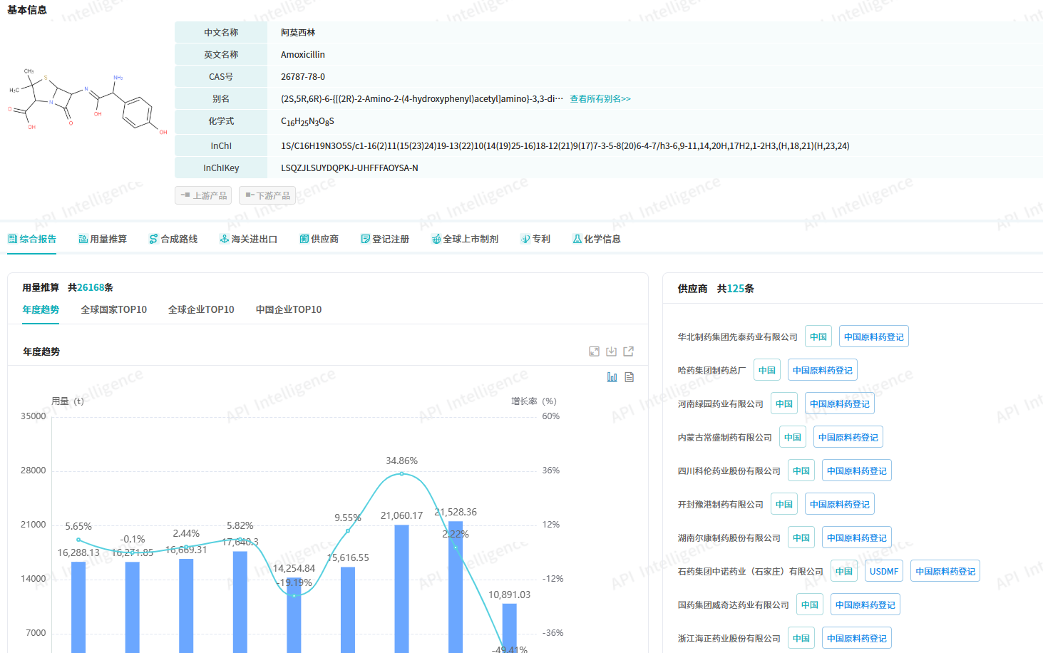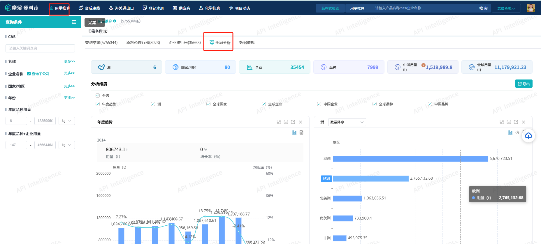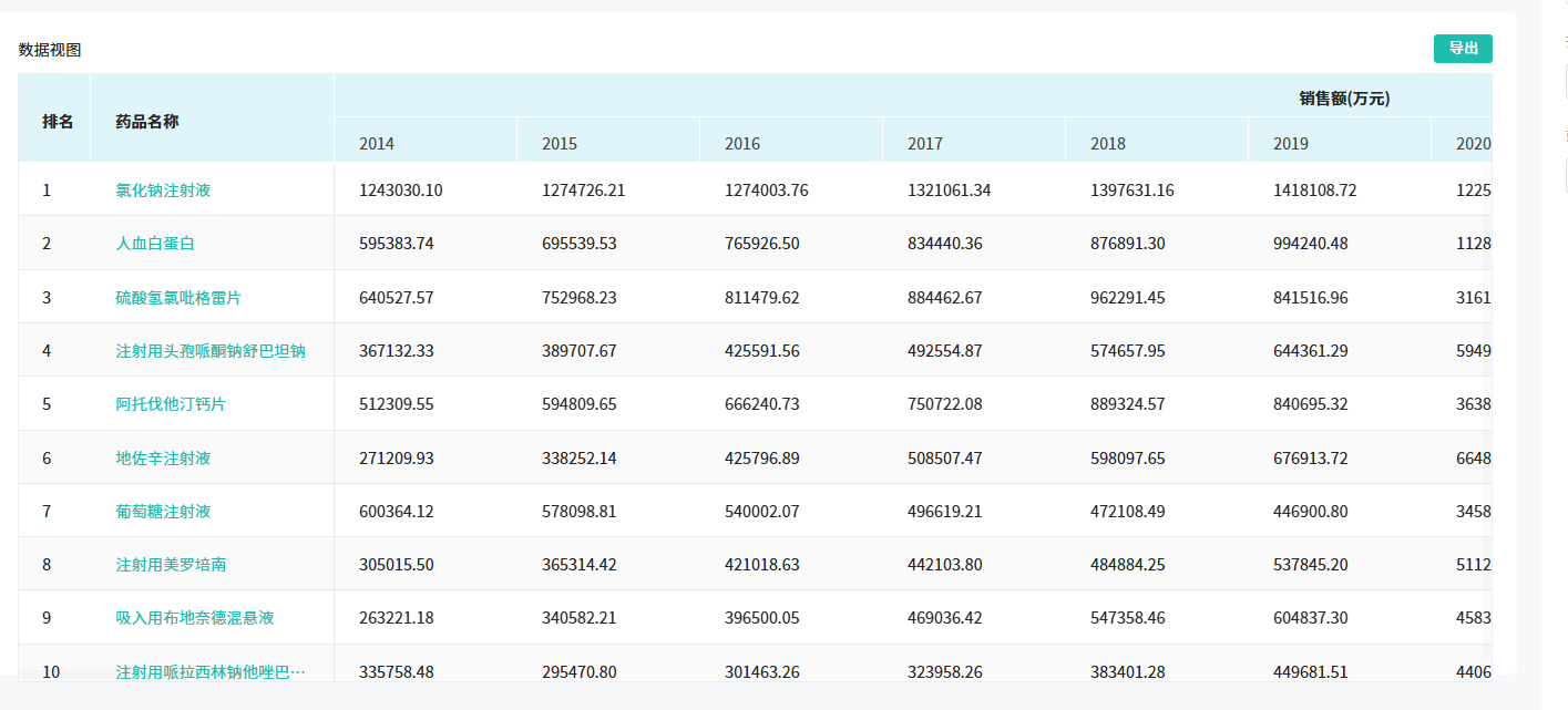 在药品分析详情页的数据视图中,新增了排名、市场份额以及在销企业数的统计信息,为用户提供更丰富的市场洞察。在ATC分析详情页的数据视图中,加入了市场份额、增长率以及年度趋势的统计,帮助用户把握市场动向。