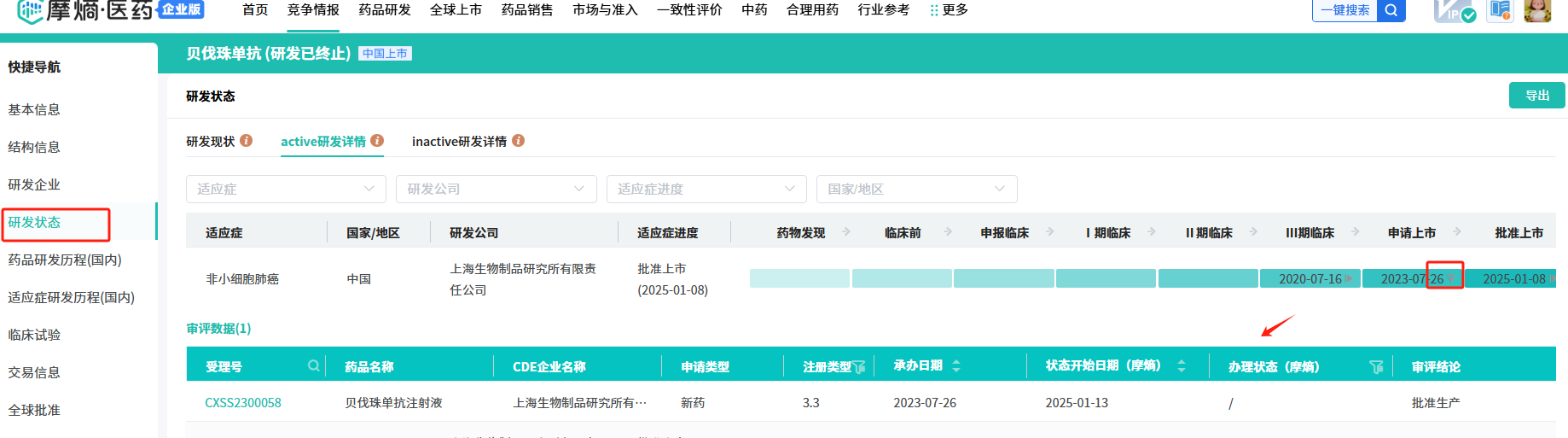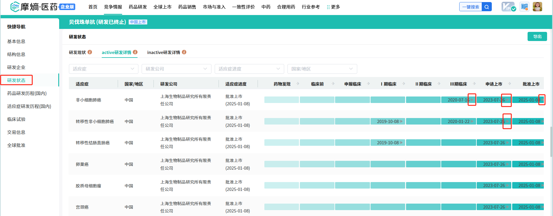 其次,在研发状态板块,新增了针对不同研发管线和研发阶段的可追溯功能,用户只需点击相应的研发阶段,即可追溯至该节点的数据来源,并展示相关的具体信息,为您提供更为详尽和直观的数据支持。