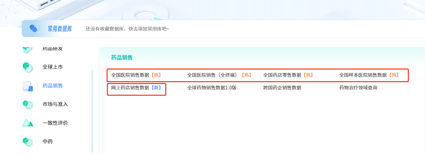 全国医院销售数据、全国医院销售(全终端)、全国药店零售数据、全国样本医院销售数据库、网上药店销售数据5大销售数据库的全局分析功能进行了重大更新。