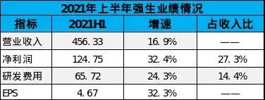 2021 年上半年,华东医药在医药工业领域研发投入 5.36 亿元,同比增长 6.38%。