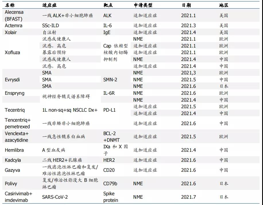 图:罗氏2021H1新获批产品或适应症