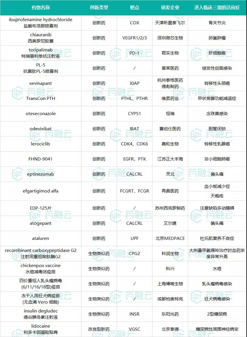 三、17款新药进入临床三期