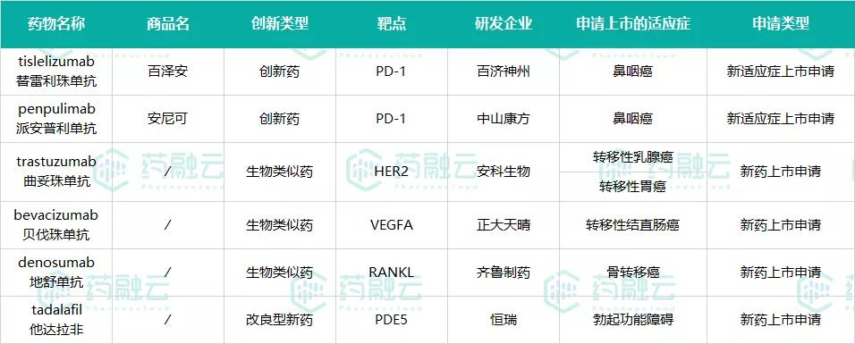 - 6款新药提交NDA申请,其中2款提交的为新适应症上市申请。