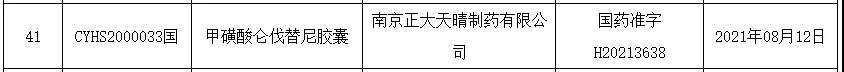 加上08月16日南京正大天晴制药有限公司甲磺酸仑伐替尼胶囊获批