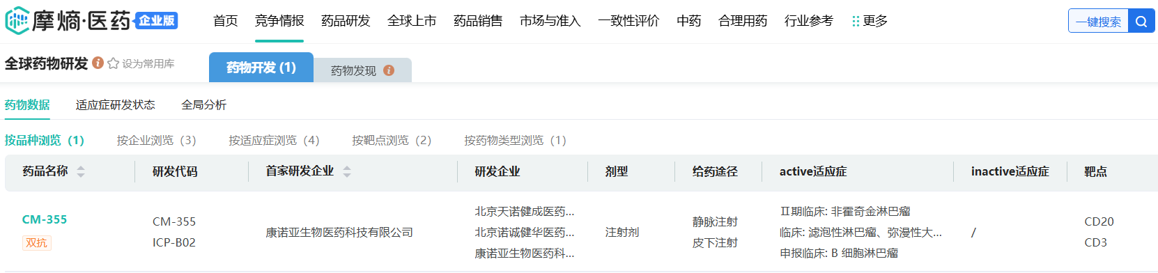 截图来源:摩熵医药数据库